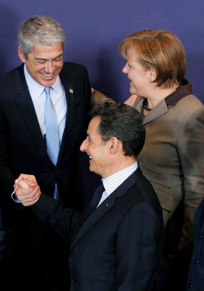 Depois de Teixeira dos Santos ter anunciado mais medidas de austeridade, José Sócrates encontrou-se com os seus pares. Com motivos para sorrir, foi louvado pelo Presidente de direita francês Sarkozy e pela chanceler de direita alemã Merkel. Elucidativo.